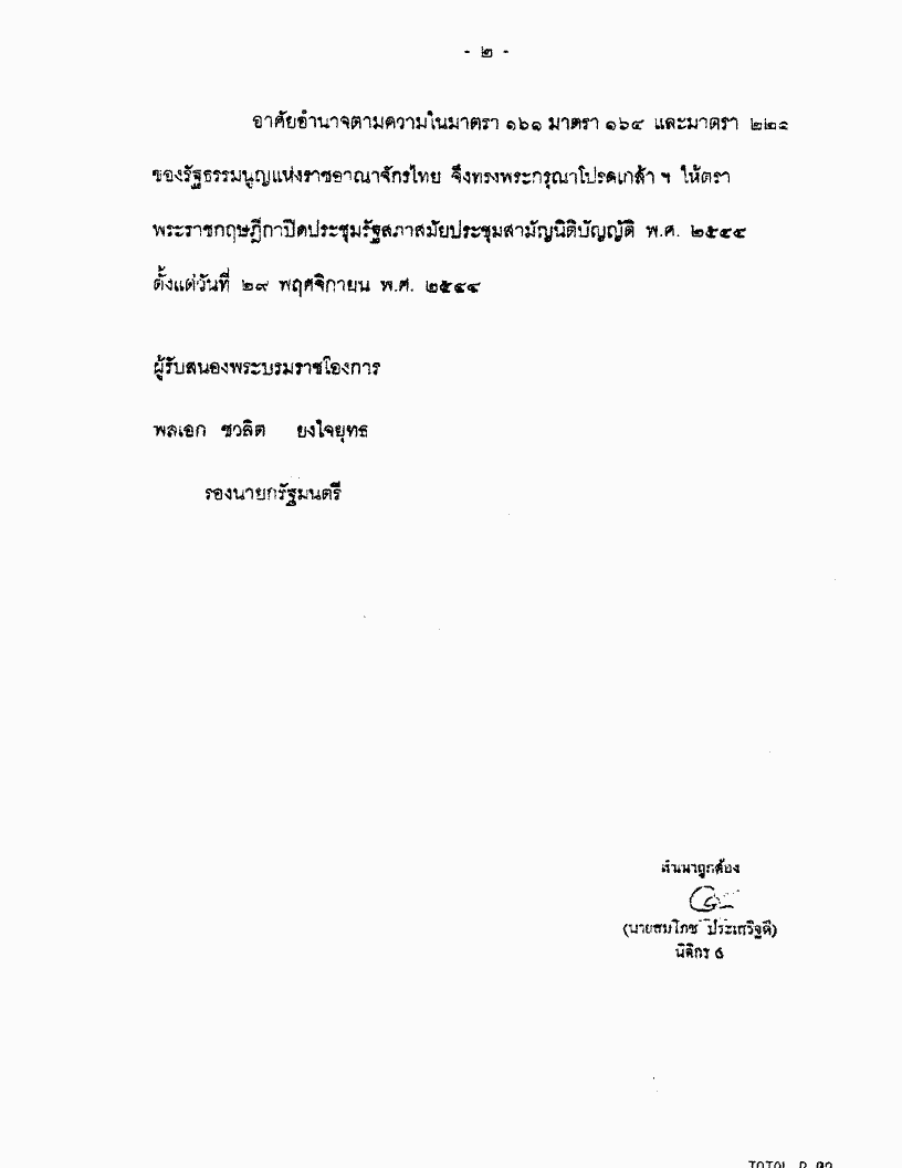 ชื่อเอกสาร :   พระราชกฤษฎีกาปิดประชุมรัฐสภาสมัยประชุมสามัญนิติบัญญัติ พ.ศ. 2544