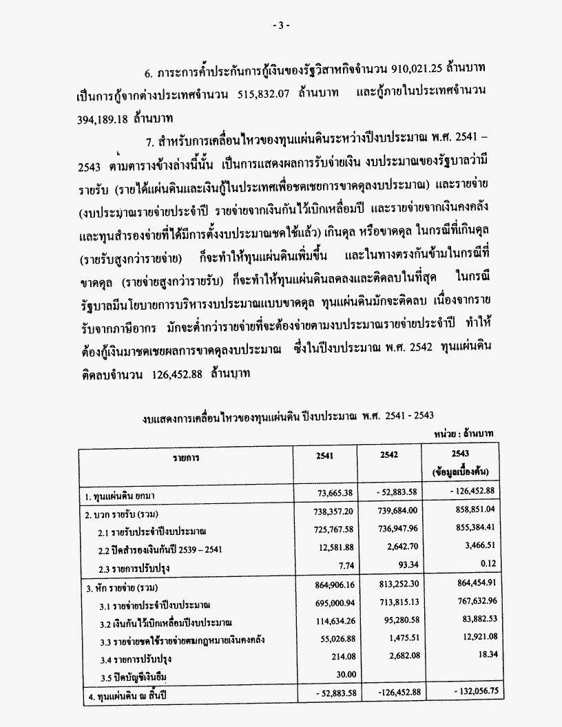 • รับทราบรายงานผลการตรวจสอบรายงานการเงินของแผ่นดินประจำปีงบประมาณ พ.ศ. 2542 ของกระทรวงการคลัง