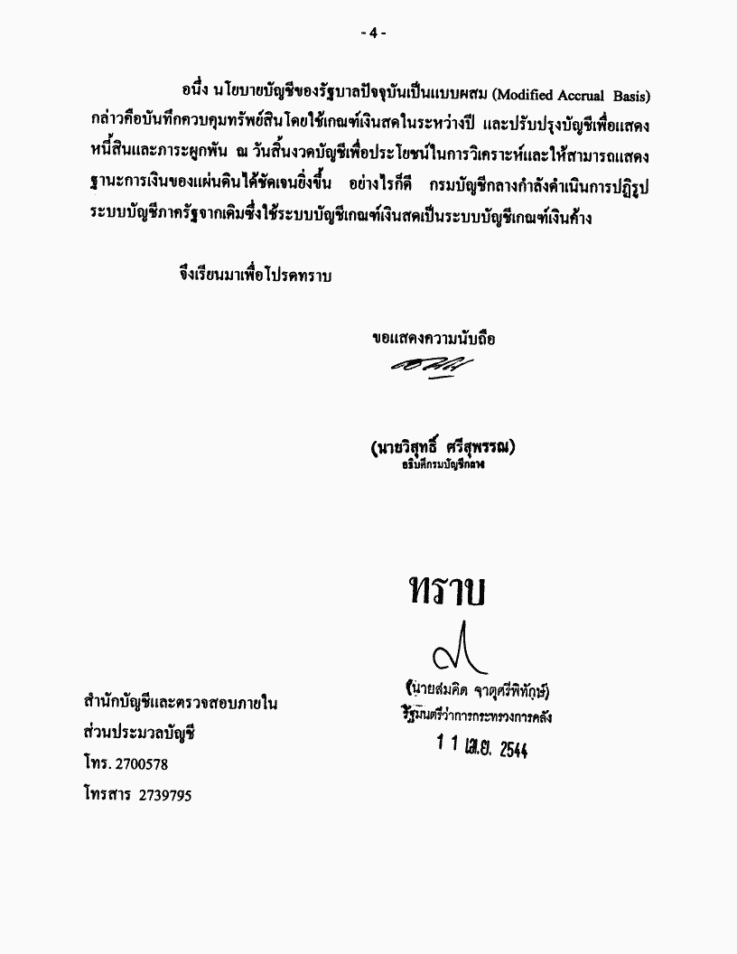 • รับทราบรายงานผลการตรวจสอบรายงานการเงินของแผ่นดินประจำปีงบประมาณ พ.ศ. 2542 ของกระทรวงการคลัง