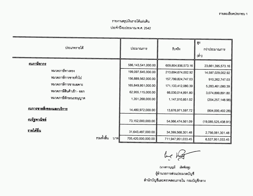 • รายงานผลการตรวจสอบรายงานการเงินของแผ่นดินประจำปีงบประมาณ พ.ศ. 2542