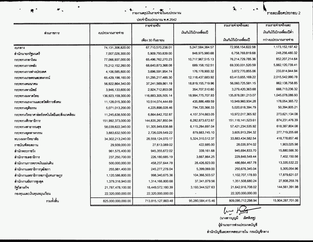 • รับทราบรายงานผลการตรวจสอบรายงานการเงินของแผ่นดินประจำปีงบประมาณ พ.ศ. 2542 ของกระทรวงการคลัง