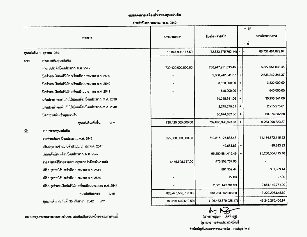 • รายงานผลการตรวจสอบรายงานการเงินของแผ่นดินประจำปีงบประมาณ พ.ศ. 2542