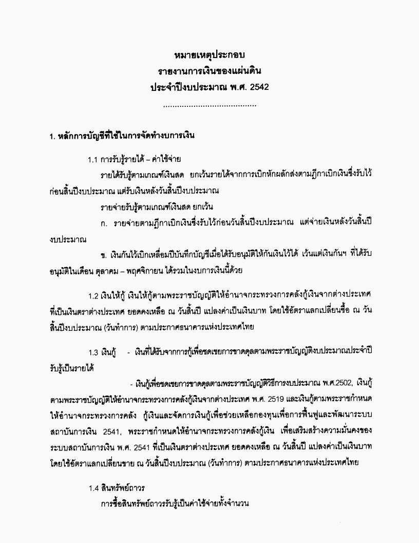 • รายงานผลการตรวจสอบรายงานการเงินของแผ่นดินประจำปีงบประมาณ พ.ศ. 2542