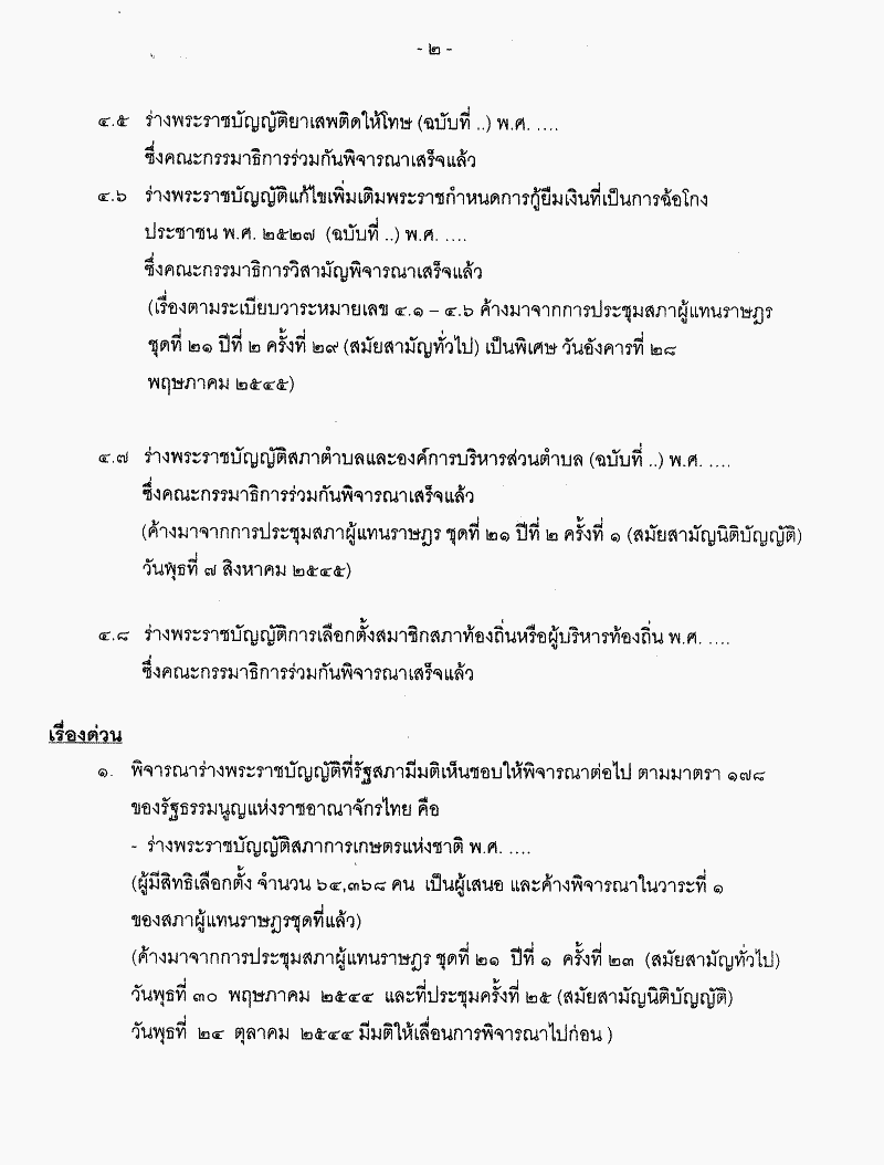 • ระเบียบวาระการประชุมสภาผู้แทนราษฎร ชุดที่ 21 ปีที่ 2 ครั้งที่ 5 (สมัยสามัญนิติบัญญัติ) วันพุธที่ 21 สิงหาคม 2545