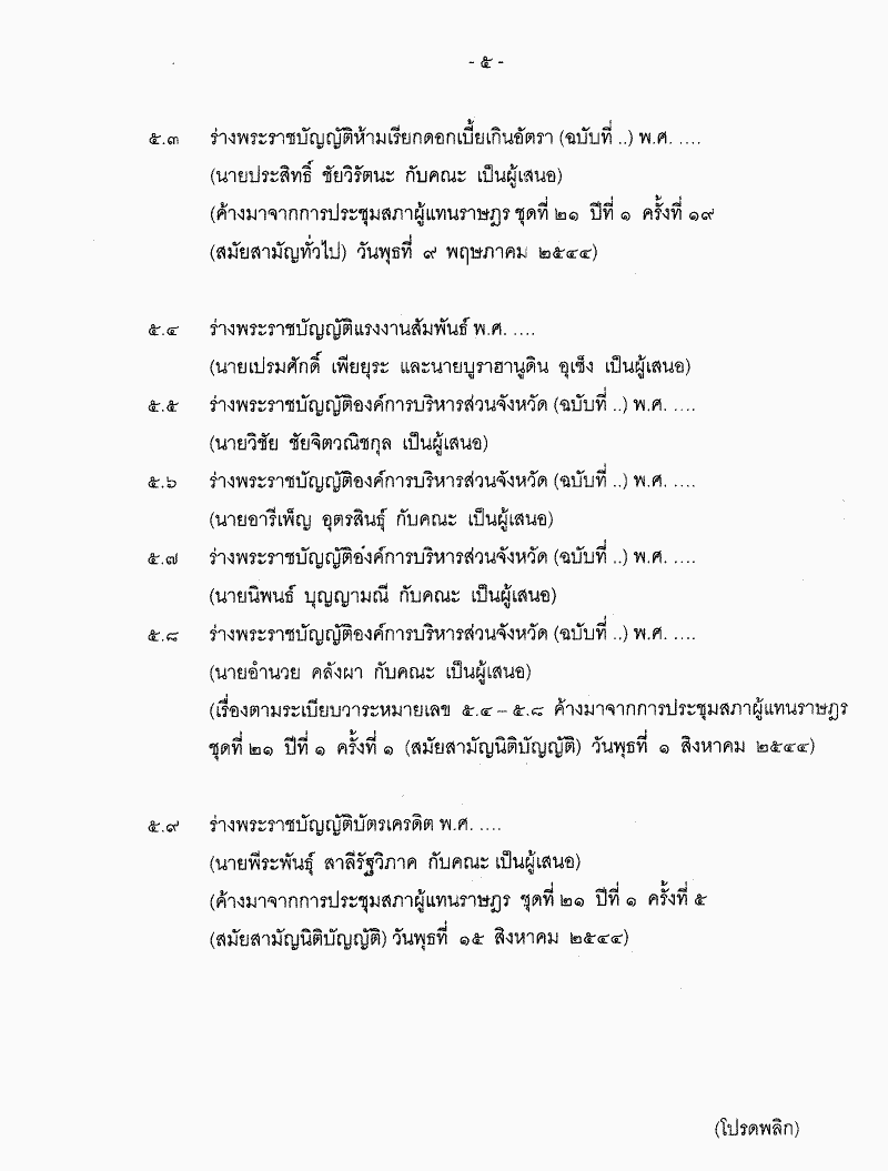 • ระเบียบวาระการประชุมสภาผู้แทนราษฎร > ชุดที่ 21 > ปีที่ 2 > สมัยสามัญนิติบัญญัติ > ครั้งที่ 5
