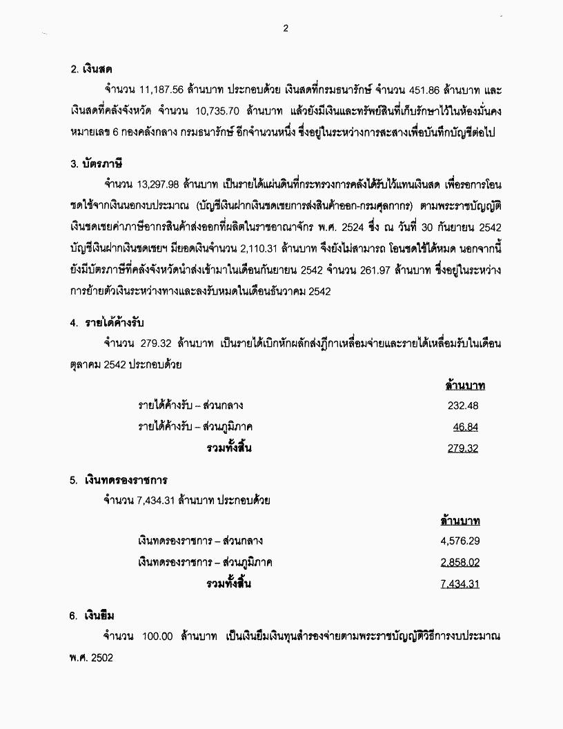 • รับทราบรายงานผลการตรวจสอบรายงานการเงินของแผ่นดินประจำปีงบประมาณ พ.ศ. 2542 ของกระทรวงการคลัง