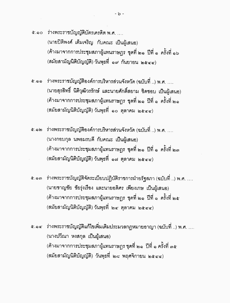ชื่อเอกสาร : ระเบียบวาระการประชุมสภาผู้แทนราษฎร ชุดที่ 21 ปีที่ 2 ครั้งที่ 5 (สมัยสามัญนิติบัญญัติ) วันพุธที่ 21 สิงหาคม 2545