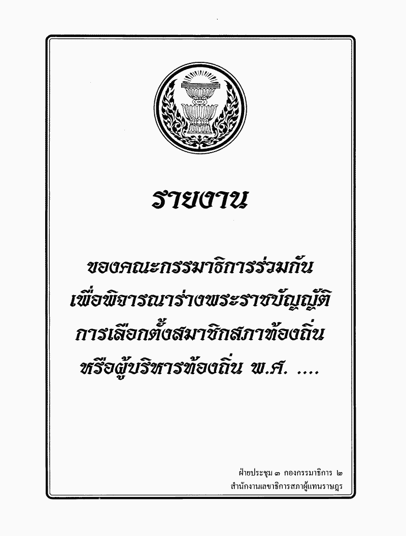 ร่างพระราชบัญญัติการเลือกตั้งสมาชิกสภาท้องถิ่นหรือผู้บริหารท้องถิ่น พ.ศ. ....ซึ่งคณะกรรมาธิการร่วมกันพิจารณาเสร็จแล้ว