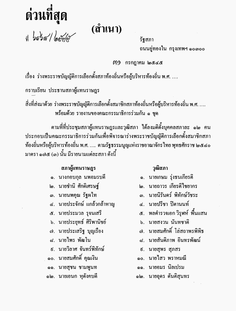 ร่างพระราชบัญญัติการเลือกตั้งสมาชิกสภาท้องถิ่นหรือผู้บริหารท้องถิ่น พ.ศ. ....ซึ่งคณะกรรมาธิการร่วมกันพิจารณาเสร็จแล้ว