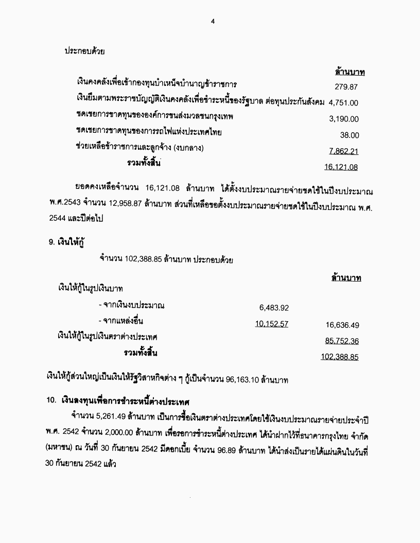 • รับทราบรายงานผลการตรวจสอบรายงานการเงินของแผ่นดินประจำปีงบประมาณ พ.ศ. 2542 ของกระทรวงการคลัง