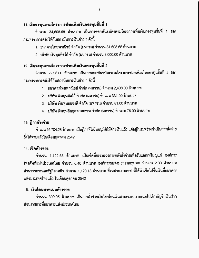 • รับทราบรายงานผลการตรวจสอบรายงานการเงินของแผ่นดินประจำปีงบประมาณ พ.ศ. 2542 ของกระทรวงการคลัง