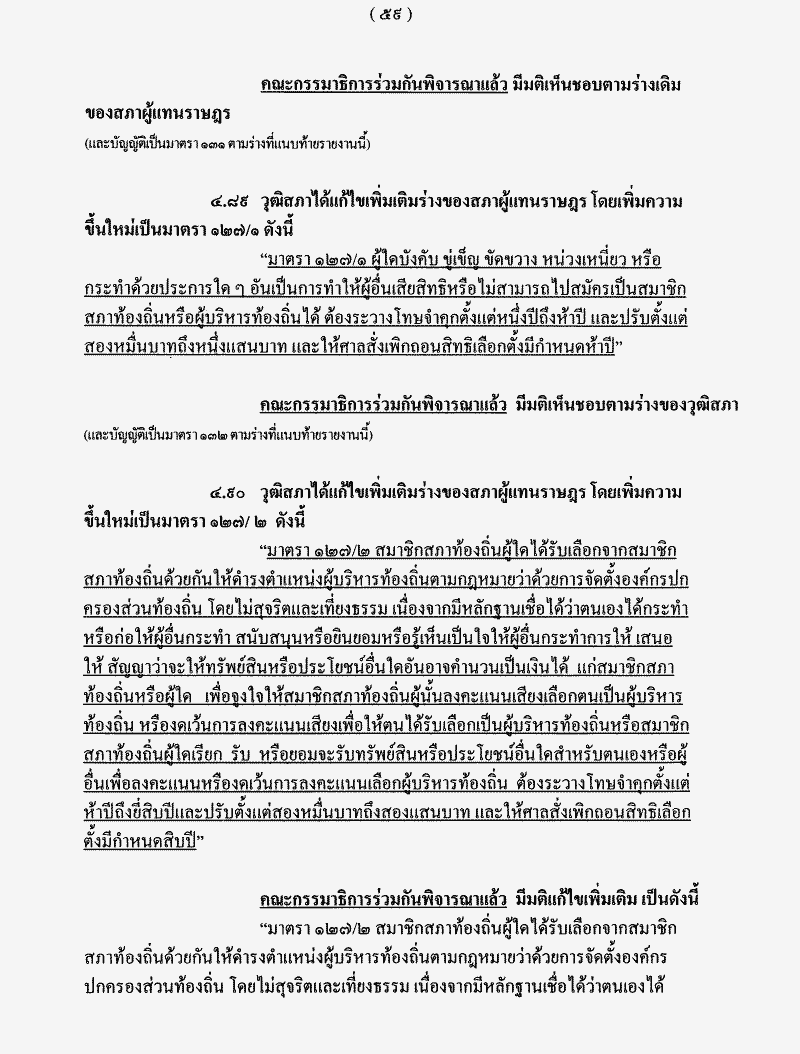 ร่างพระราชบัญญัติการเลือกตั้งสมาชิกสภาท้องถิ่นหรือผู้บริหารท้องถิ่น พ.ศ. ....ซึ่งคณะกรรมาธิการร่วมกันพิจารณาเสร็จแล้ว