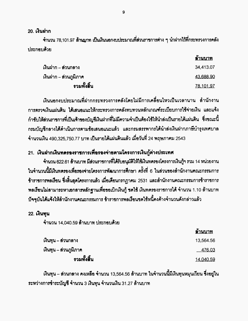 • รับทราบรายงานผลการตรวจสอบรายงานการเงินของแผ่นดินประจำปีงบประมาณ พ.ศ. 2542 ของกระทรวงการคลัง