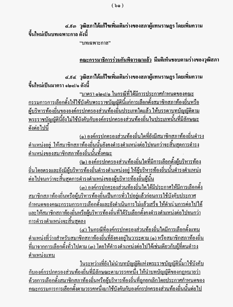 ร่างพระราชบัญญัติการเลือกตั้งสมาชิกสภาท้องถิ่นหรือผู้บริหารท้องถิ่น พ.ศ. ....ซึ่งคณะกรรมาธิการร่วมกันพิจารณาเสร็จแล้ว