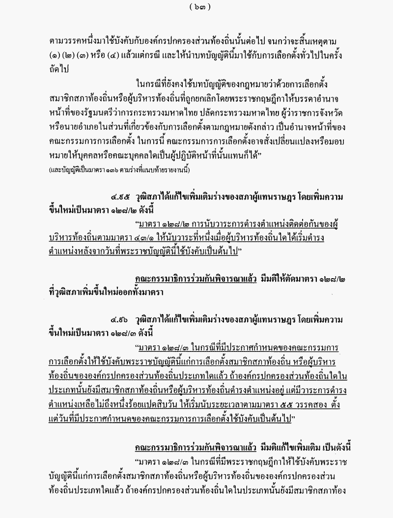 ร่างพระราชบัญญัติการเลือกตั้งสมาชิกสภาท้องถิ่นหรือผู้บริหารท้องถิ่น พ.ศ. ....ซึ่งคณะกรรมาธิการร่วมกันพิจารณาเสร็จแล้ว