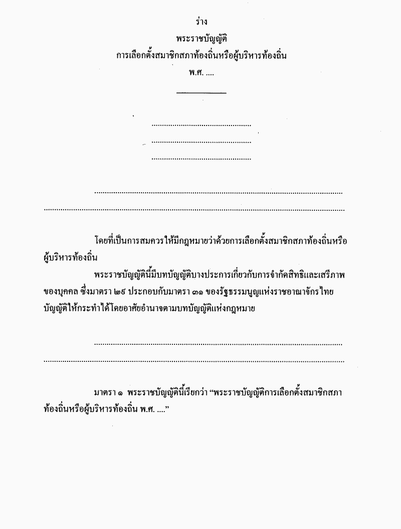 ร่างพระราชบัญญัติการเลือกตั้งสมาชิกสภาท้องถิ่นหรือผู้บริหารท้องถิ่น พ.ศ. ....