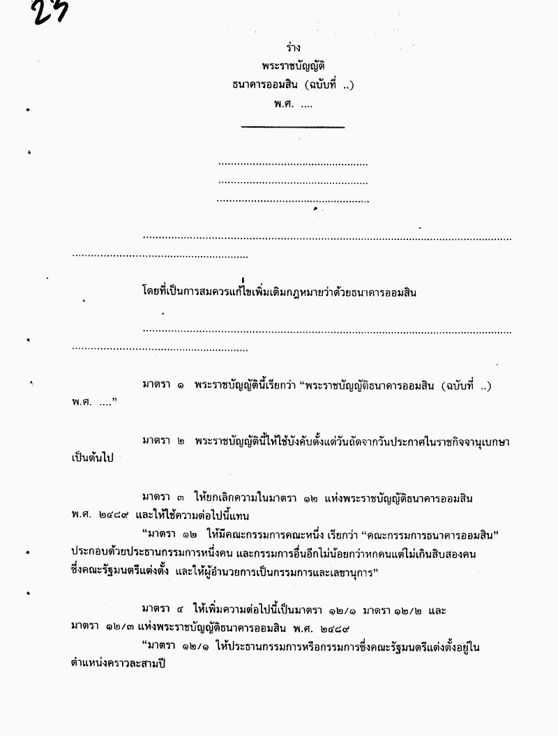 • ร่างพระราชบัญญัติธนาคารออมสิน (ฉบับที่..) พ.ศ. ....