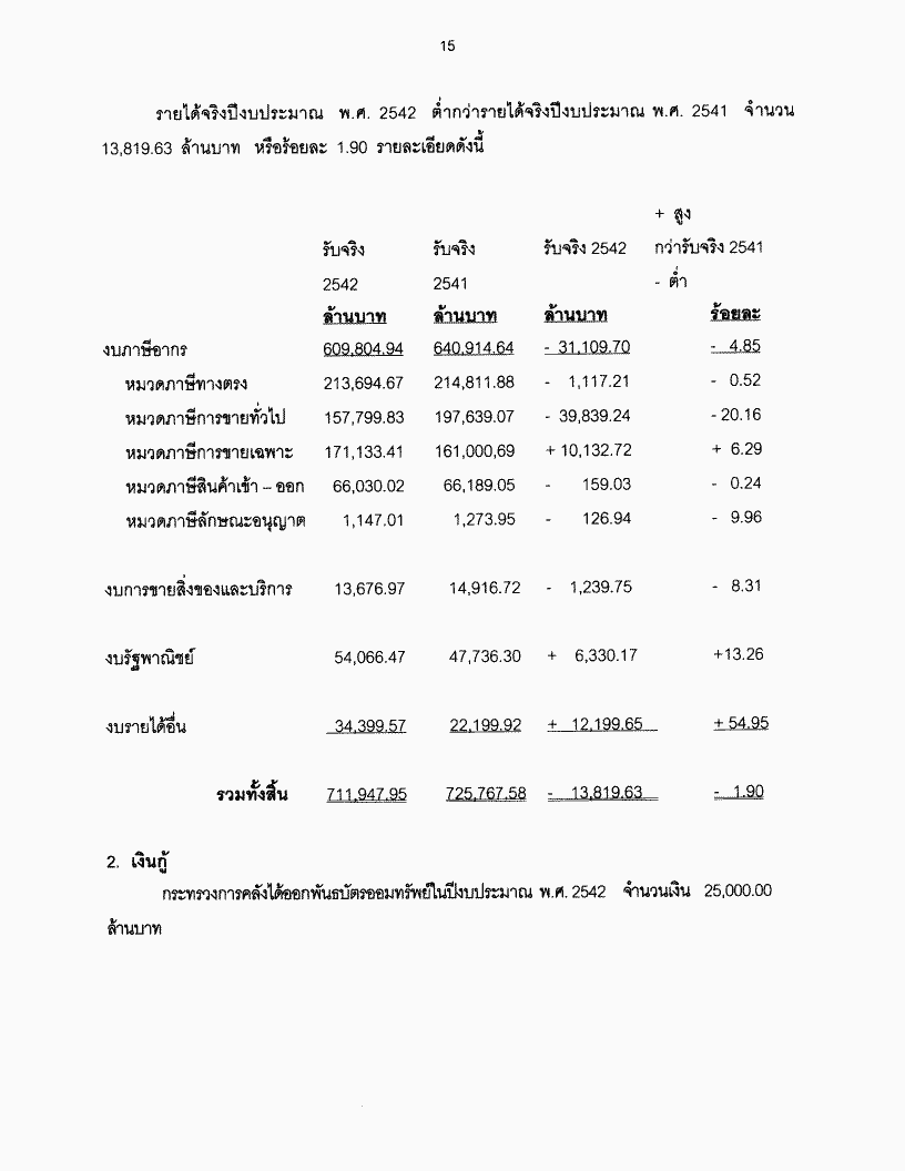 • รับทราบรายงานผลการตรวจสอบรายงานการเงินของแผ่นดินประจำปีงบประมาณ พ.ศ. 2542 ของกระทรวงการคลัง