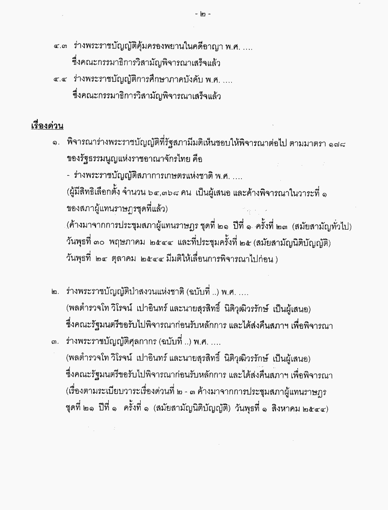 • ระเบียบวาระการประชุมสภาผู้แทนราษฎร ชุดที่ 21 ปีที่ 2 ครั้งที่ 7 (สมัยสามัญนิติบัญญัติ) วันพุธที่ 28 สิงหาคม 2545