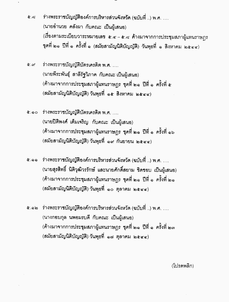• ระเบียบวาระการประชุมสภาผู้แทนราษฎร ชุดที่ 21 ปีที่ 2 ครั้งที่ 7 (สมัยสามัญนิติบัญญัติ) วันพุธที่ 28 สิงหาคม 2545
