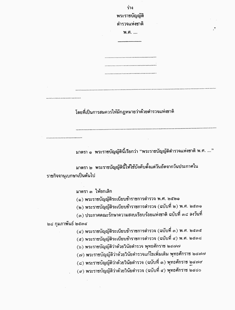 ร่างพระราชบัญญัติตำรวจแห่งชาติ พ.ศ. .... และร่างพระราชบัญญัติระเบียบบริหารราชการแผ่นดิน (ฉบับที่..) พ.ศ.....