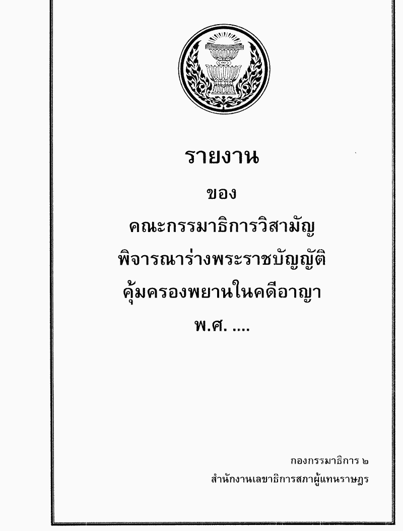 ชื่อเอกสาร :   ร่างพระราชบัญญัติคุ้มครองพยานในคดีอาญา พ.ศ.....ซึ่งคณะกรรมาธิการวิสามัญพิจารณาเสร็จแล้ว
