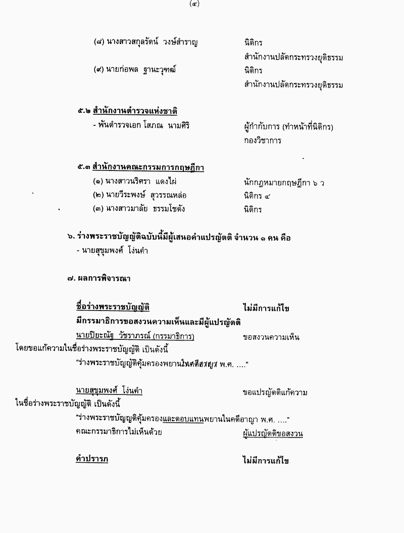 • ร่างพระราชบัญญัติคุ้มครองพยานในคดีอาญา พ.ศ.....ซึ่งคณะกรรมาธิการวิสามัญพิจารณาเสร็จแล้ว