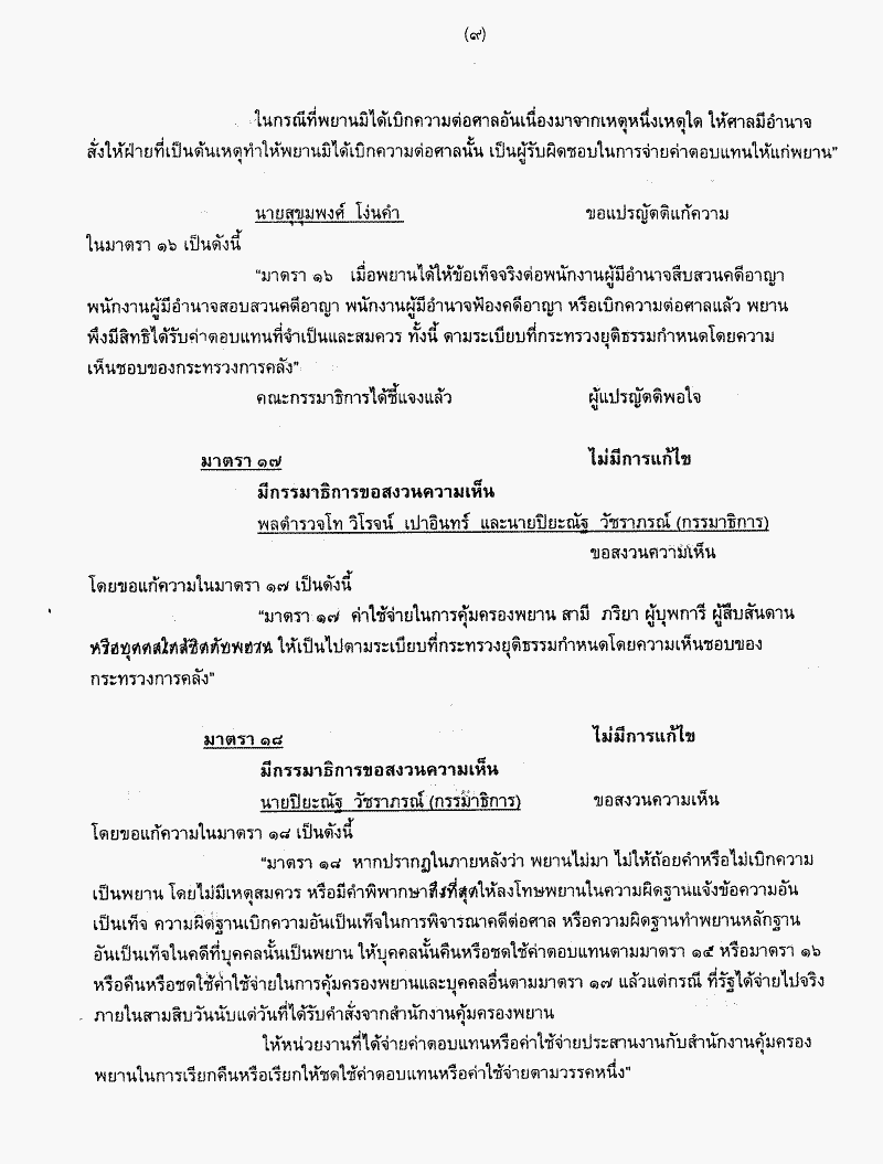 • ร่างพระราชบัญญัติคุ้มครองพยานในคดีอาญา พ.ศ.....ซึ่งคณะกรรมาธิการวิสามัญพิจารณาเสร็จแล้ว