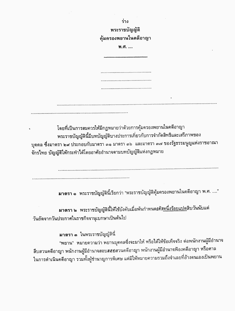 • ร่างพระราชบัญญัติคุ้มครองพยานในคดีอาญา พ.ศ.....