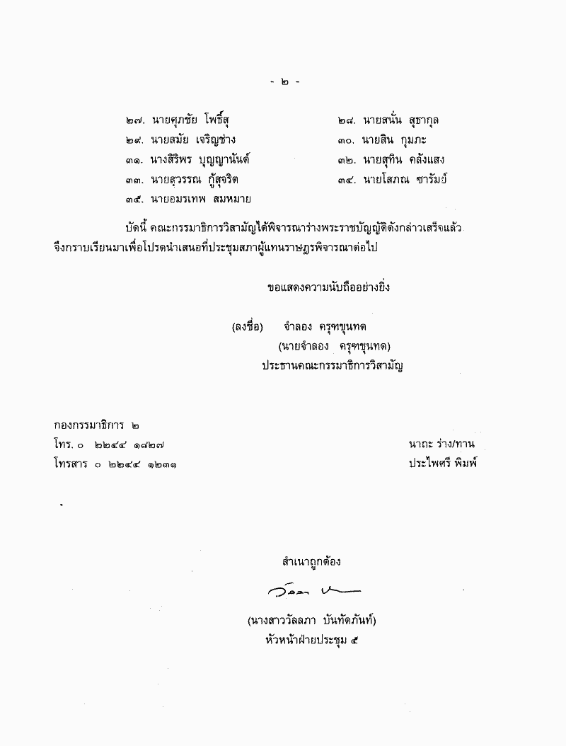 • ระเบียบวาระการประชุมสภาผู้แทนราษฎร > ชุดที่ 21 > ปีที่ 2 > สมัยสามัญนิติบัญญัติ > ครั้งที่ 7 > (4) เรื่องที่คณะกรรมาธิการพิจารณาเสร็จแล้ว