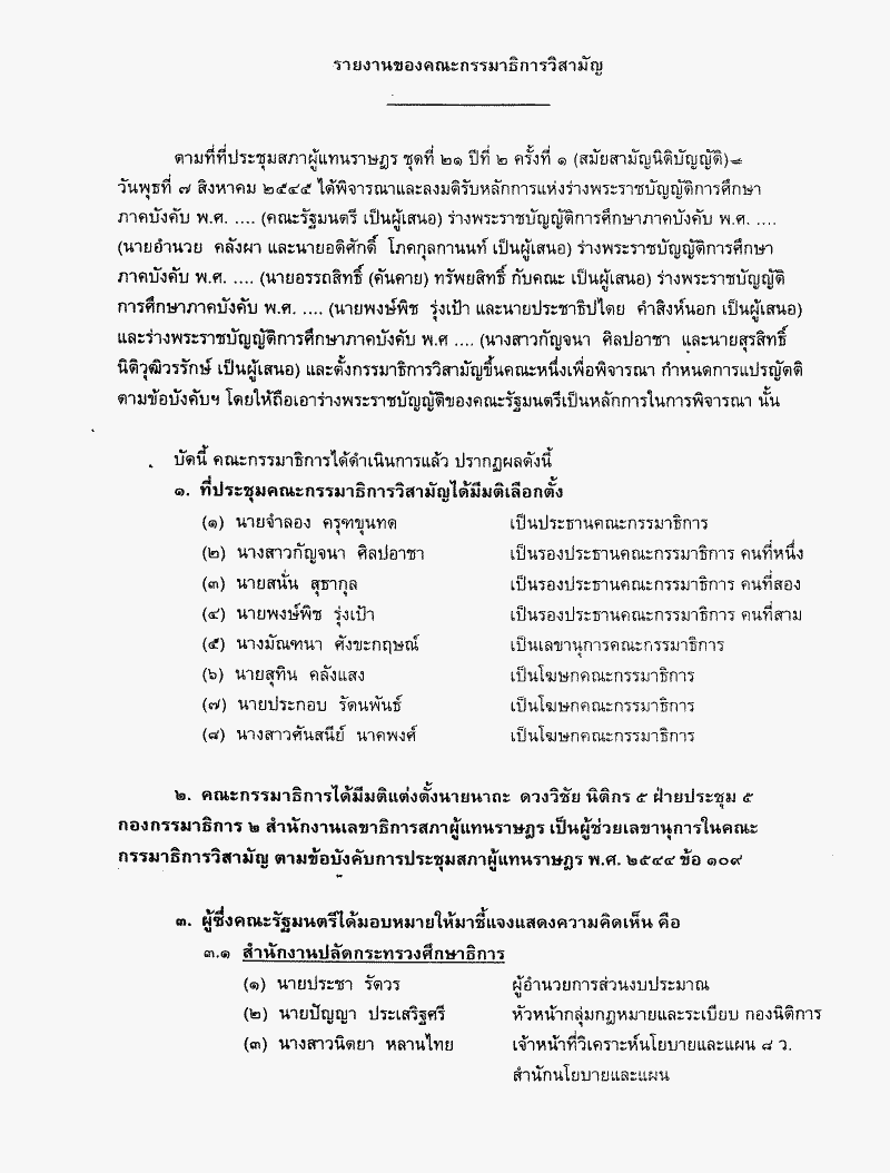 • ร่างพระราชบัญญัติการศึกษาภาคบังคับ พ.ศ.....ซึ่งคณะกรรมาธิการวิสามัญพิจารณาเสร็จแล้ว