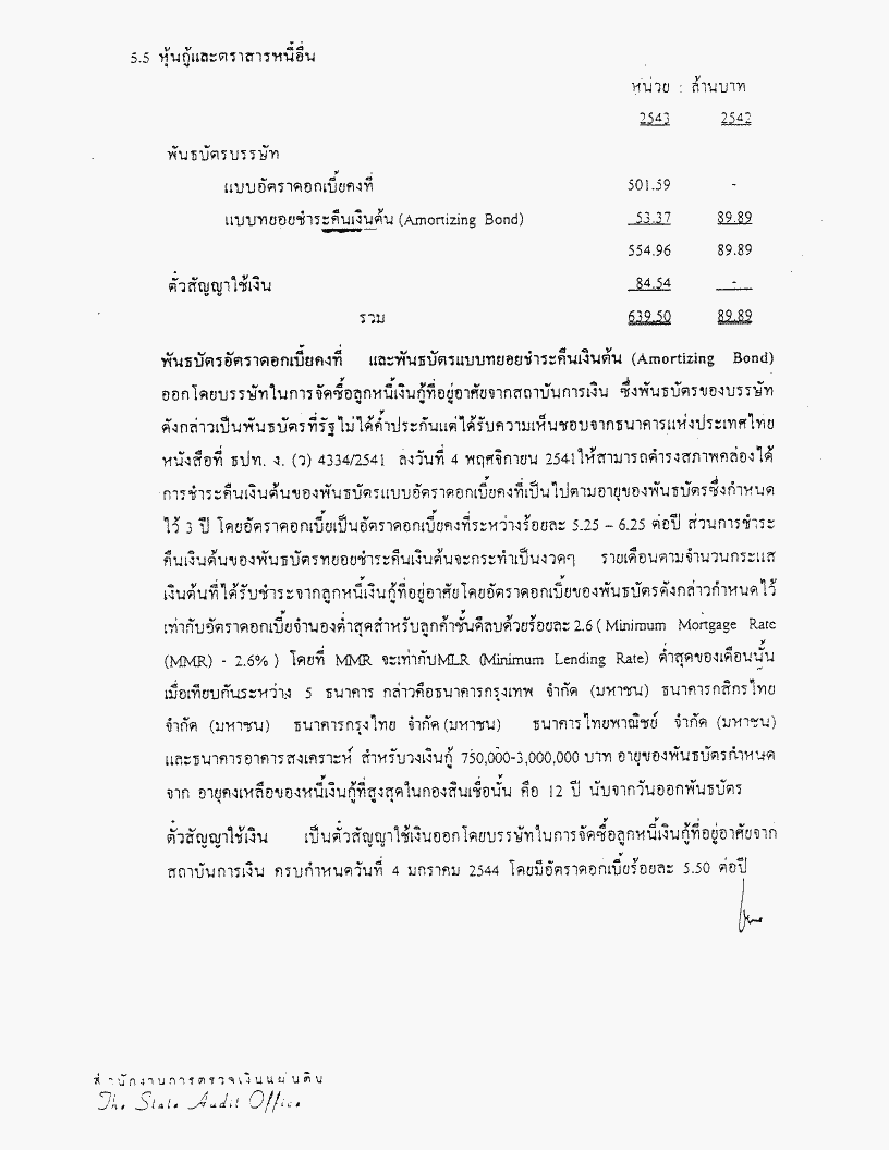 • รายงานกิจการ งบดุล งบกำไรขาดทุน และผลการดำเนินงานประจำปี 2543 (1 มกราคม 2543 - 31 ธันวาคม 2543) ของบรรษัทตลาดรองสินเชื่อที่อยู่อาศัย