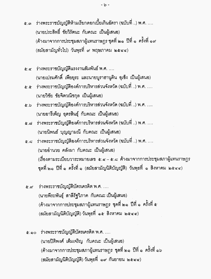 • ระเบียบวาระการประชุมสภาผู้แทนราษฎร ชุดที่ 21 ปีที่ 2 ครั้งที่ 12 (สมัยสามัญนิติบัญญัติ) วันพุธที่ 11 กันยายน 2545