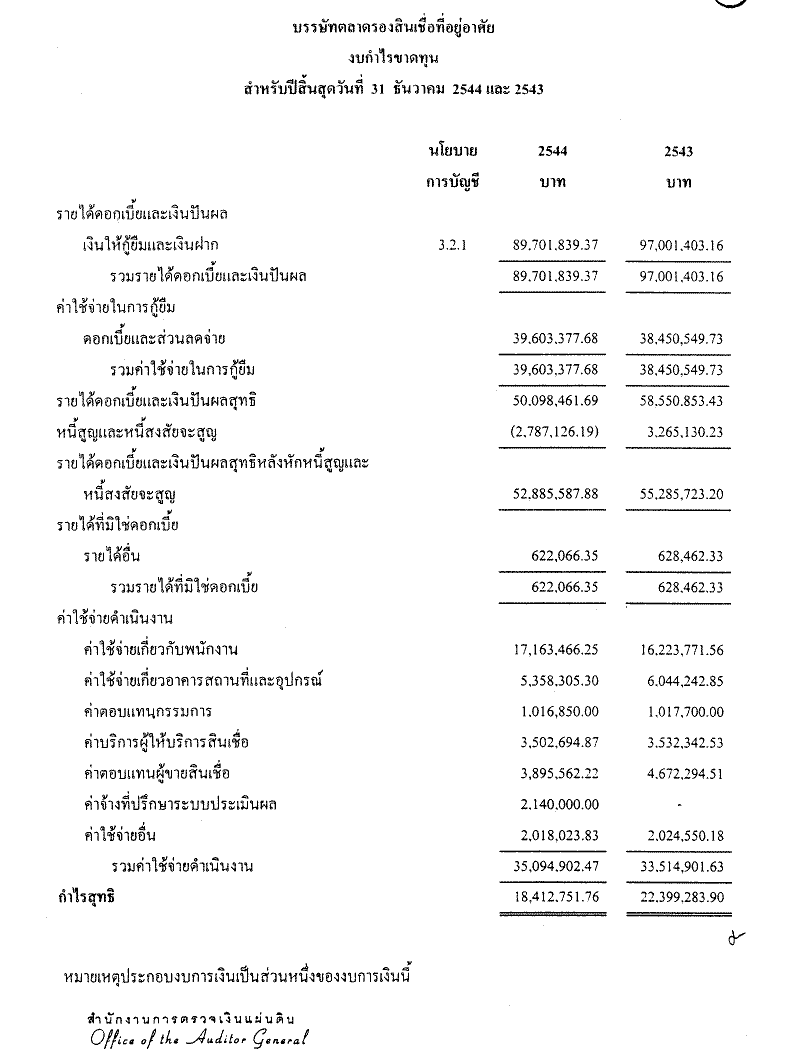 • รายงานกิจการ งบดุล งบกำไรขาดทุนและผลการดำเนินงานประจำปี 2544 (1 มกราคม 2544- 31 ธันวาคม 2544) ของบรรษัทตลาดรองสินเชื่อที่อยู่อาศัย