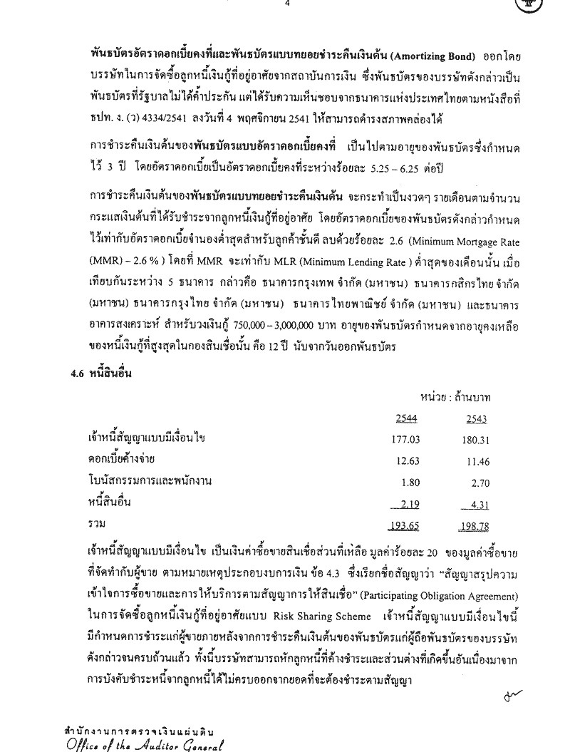 รายงานกิจการ งบดุล งบกำไรขาดทุนและผลการดำเนินงานประจำปี 2544 (1 มกราคม 2544- 31 ธันวาคม 2544) ของบรรษัทตลาดรองสินเชื่อที่อยู่อาศัย |