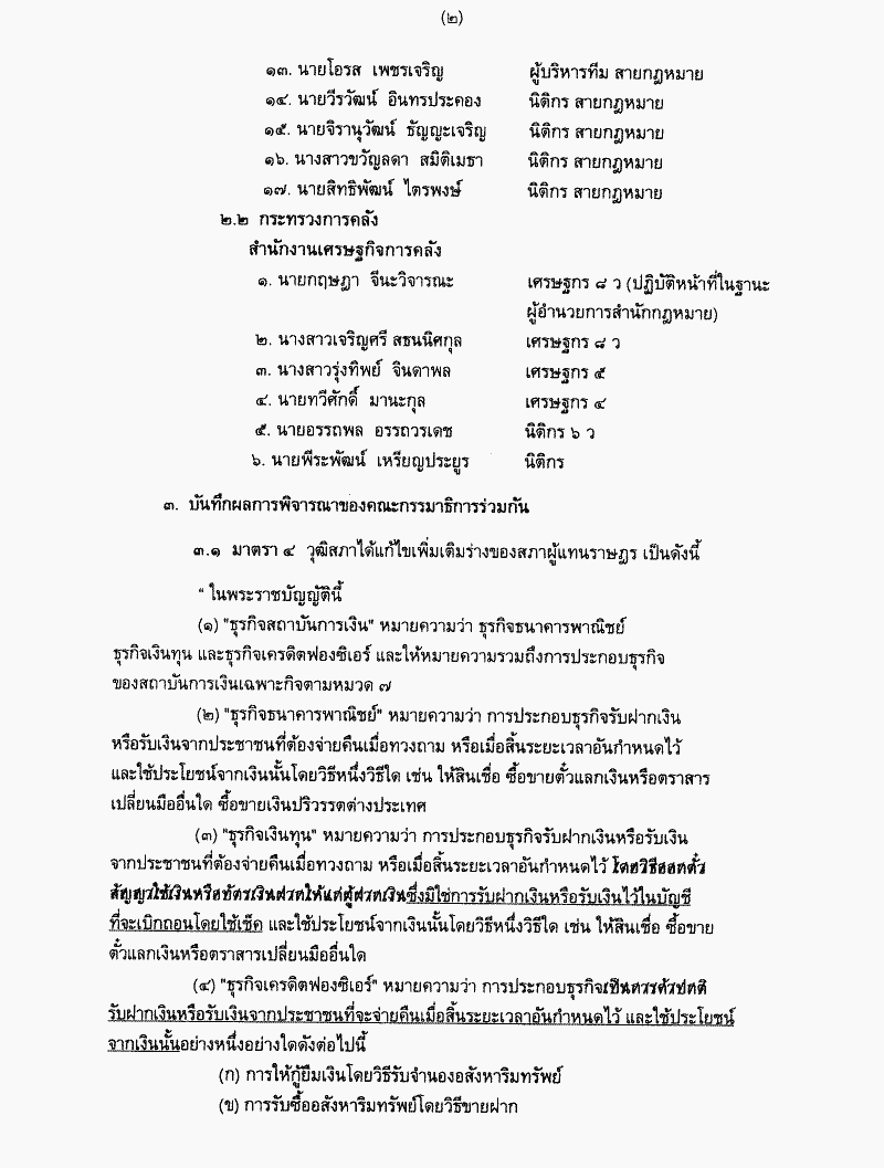ร่างพระราบัญญัติธุรกิจสถาบันการเงิน พ.ศ..... ซึ่งคณะกรรมาธิการร่วมกันพิจารณาเสร็จแล้ว