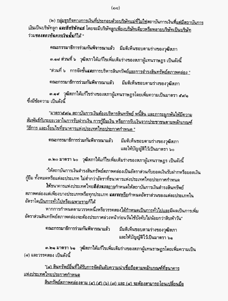ร่างพระราบัญญัติธุรกิจสถาบันการเงิน พ.ศ..... ซึ่งคณะกรรมาธิการร่วมกันพิจารณาเสร็จแล้ว