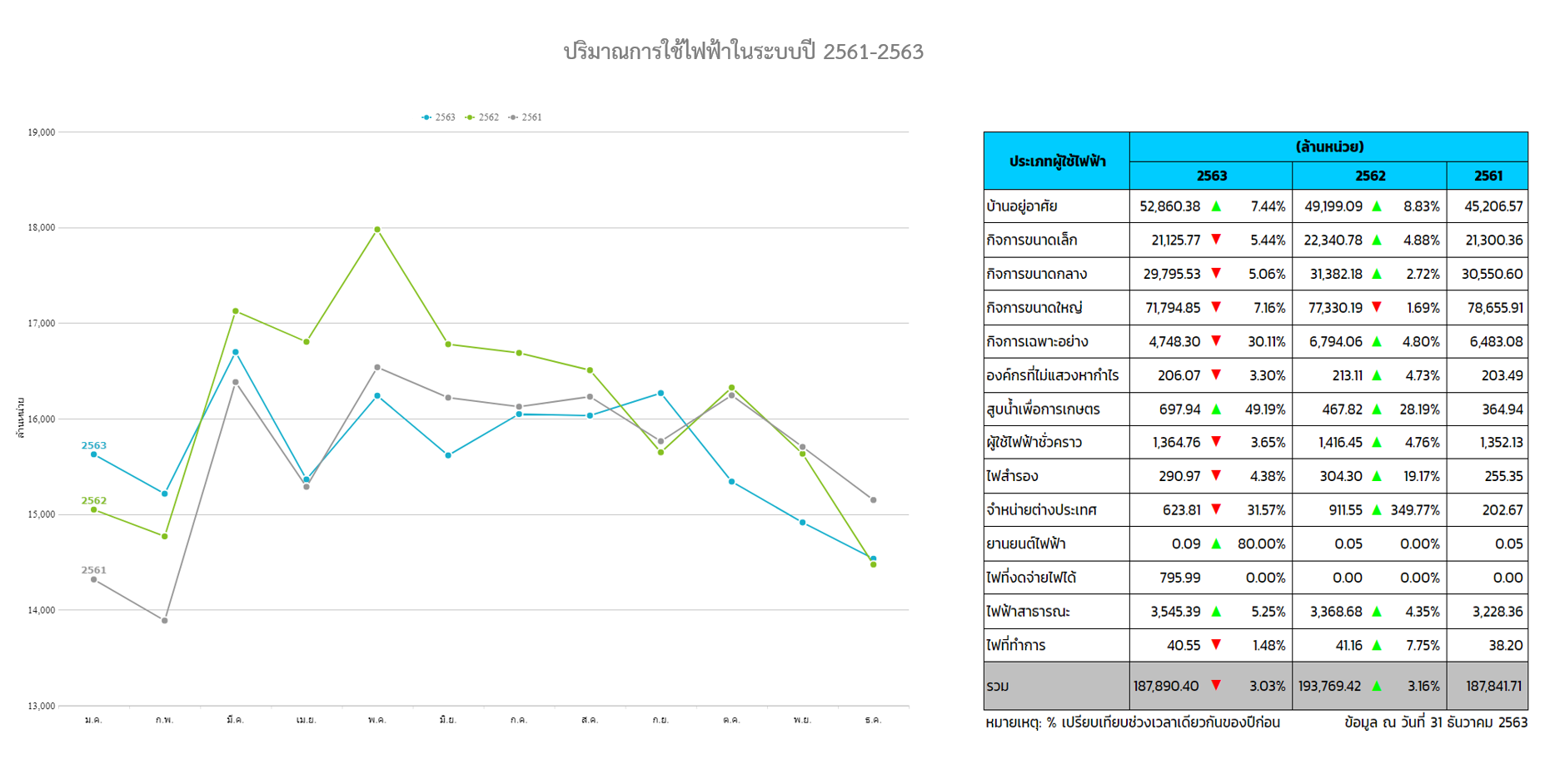 ปริมาณการใช้ไฟฟ้าในระบบปี 2561-2563
