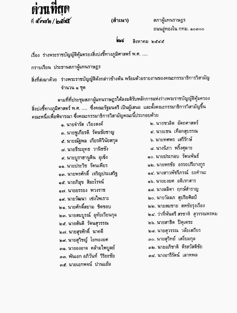 • ร่างพระราชบัญญัติคุ้มครองสิ่งบ่งชี้ทางภูมิศาสตร์ พ.ศ. ... ซึ่งคณะกรรมาธิการวิสามัญพิจารณาเสร็จแล้ว