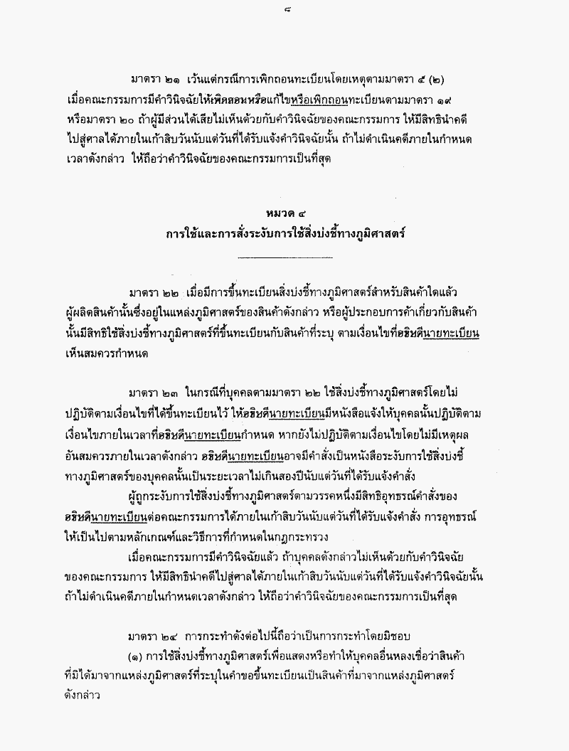• ร่างพระราชบัญญัติคุ้มครองสิ่งบ่งชี้ทางภูมิศาสตร์ พ.ศ. ...