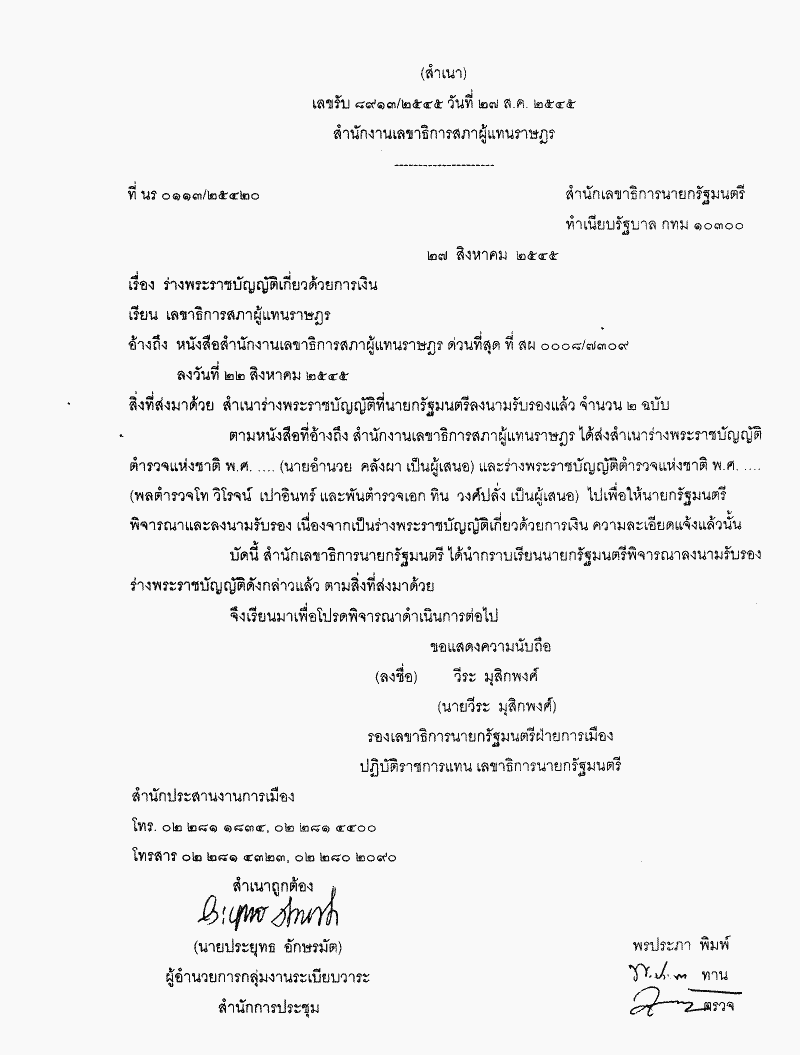 ร่างพระราชบัญญัติตำรวจแห่งชาติ พ.ศ. ....(นายอำนวย คลังผา เป็นผู้เสนอ)