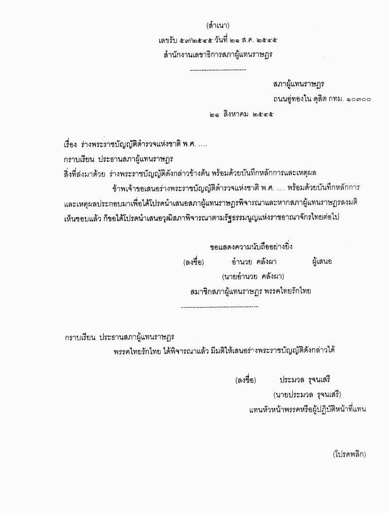 ร่างพระราชบัญญัติตำรวจแห่งชาติ พ.ศ. ....(นายอำนวย คลังผา เป็นผู้เสนอ)