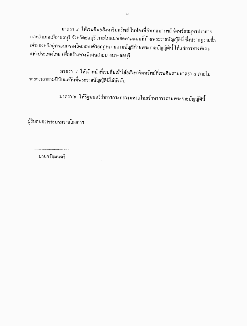 • ร่างพระราชบัญญัติเวนคืนอสังหาริมทรัพย์ เพื่อสร้างทางพิเศษสายบางนา-ชลบุรี ในท้องที่อำเภอบางพลี จังหวัดสมุทรปราการ และอำเภอเมืองชลบุรี จังหวัดชลบุรี พ.ศ. ....