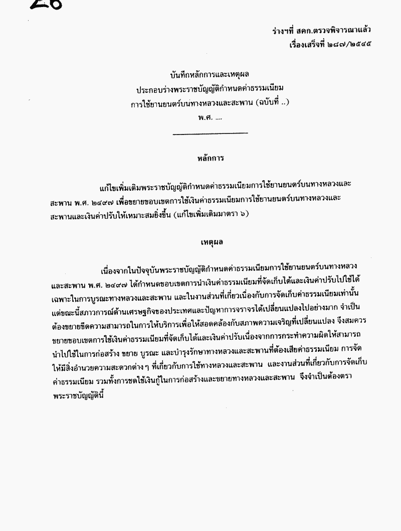 ร่างพระราชบัญญัติกำหนดค่าธรรมเนียมการใช้ยานยนตร์บนทางหลวงและสะพาน ( ฉบับที่.. ) พ.ศ. .... |