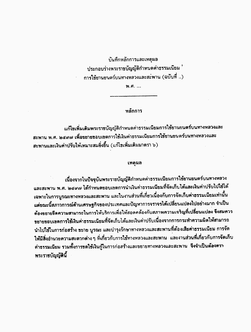 • ร่างพระราชบัญญัติกำหนดค่าธรรมเนียมการใช้ยานยนตร์บนทางหลวงและสะพาน (ฉบับที่ ..) พ. ศ.....