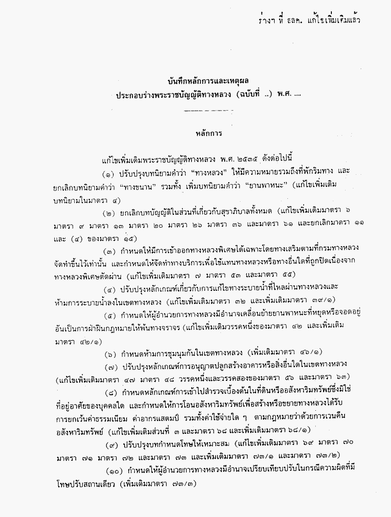 • ร่างพระราชบัญญัติทางหลวง (ฉบับที่..) พ.ศ. ....