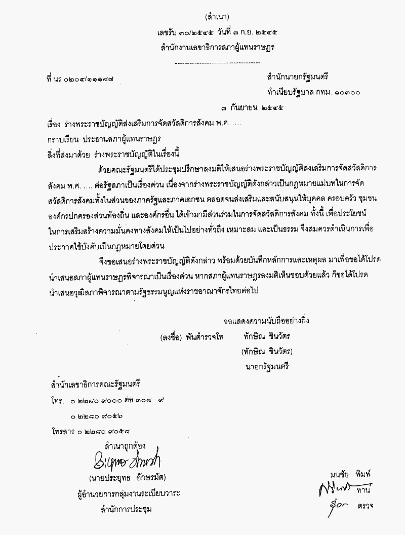 • ร่างพระราชบัญญัติส่งเสริมการจัดสวัสดิการสังคม พ.ศ. .... (คณะรัฐมนตรี เป็นผู้เสนอ)