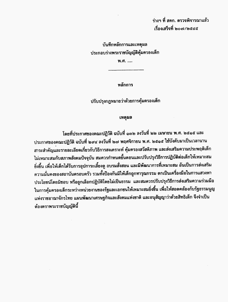 ร่างพระราชบัญญัติคุ้มครองเด็ก พ.ศ. .... (คณะรัฐมนตรี เป็นผู้เสนอ)