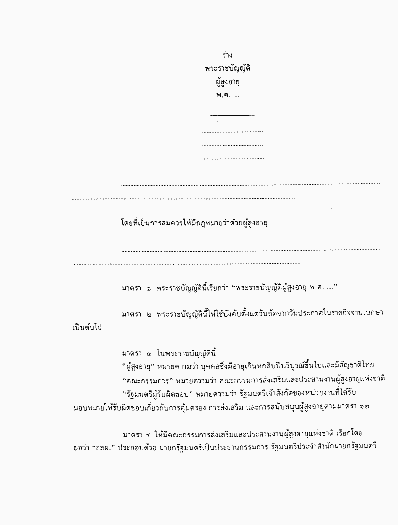 • ร่างพระราชบัญญัติผู้สูงอายุ พ.ศ. ....