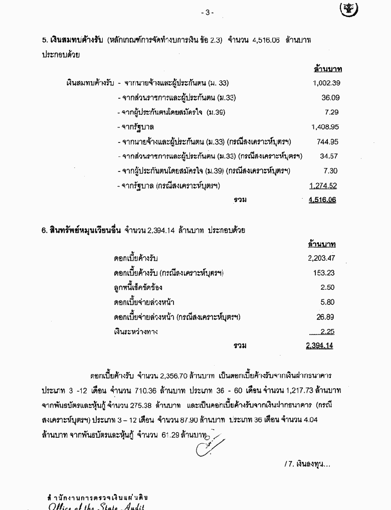 • รายงานการตรวจสอบงบดุล งบรายรับ-รายจ่ายเงินกองทุนประกันสังคม ประจำปี ๒๕๔๒